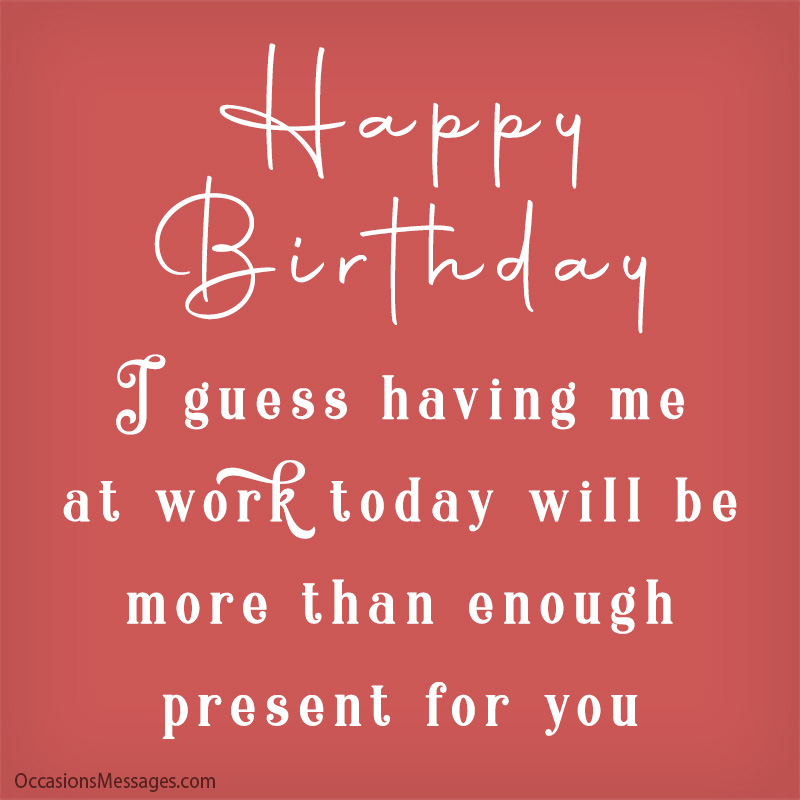- Happy Birthday awesome Colleague. I guess having me at work today will be more than enough present for you. Hahahaha. Enjoy yourself.